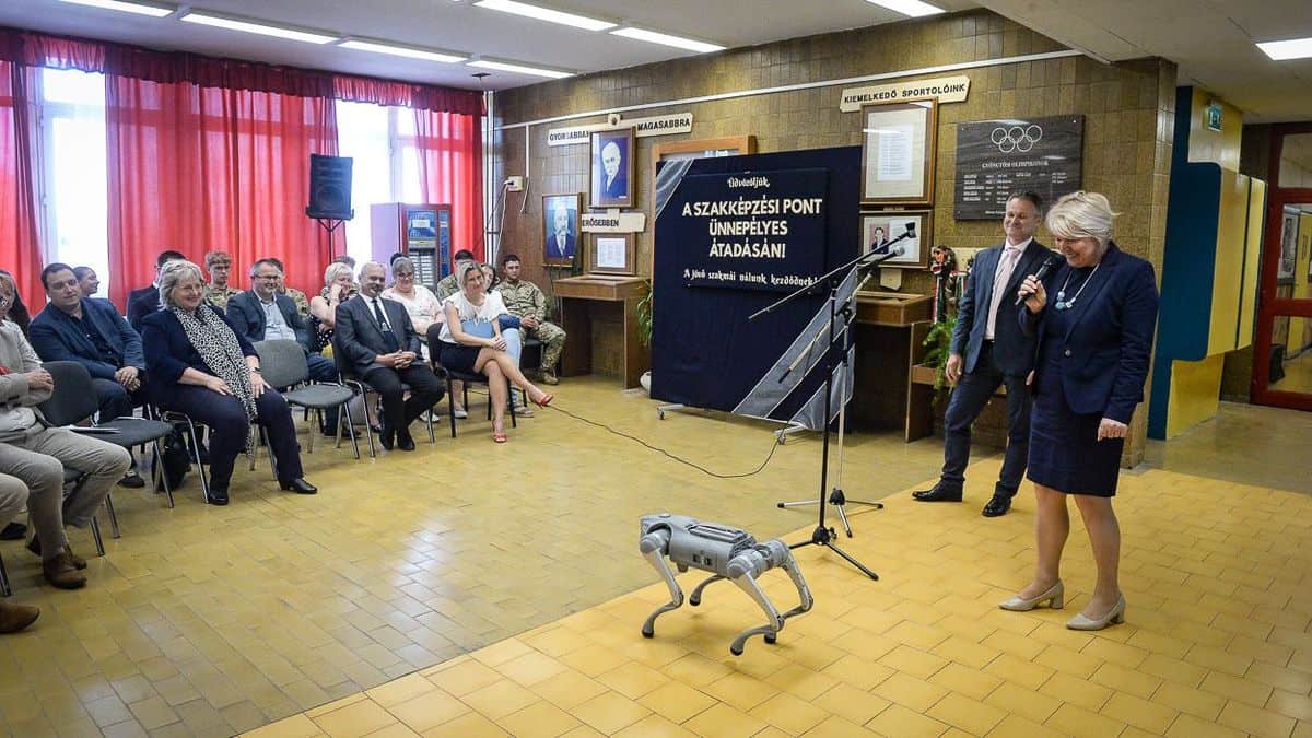 Milibák-Veres Erika, a HVSZC főigazgatója először bemutatta azt a robotkutyát, amely programozásánál a mesterséges intelligencia használatát is elsajátíthatják a diákok. A kínai gyártmányú robotkutya másik szerepe az lesz, hogy rajta keresztül kínai informatikaoktatók online robotika kurzusokat tartanak majd a technikum diákjainak, tette hozzá.