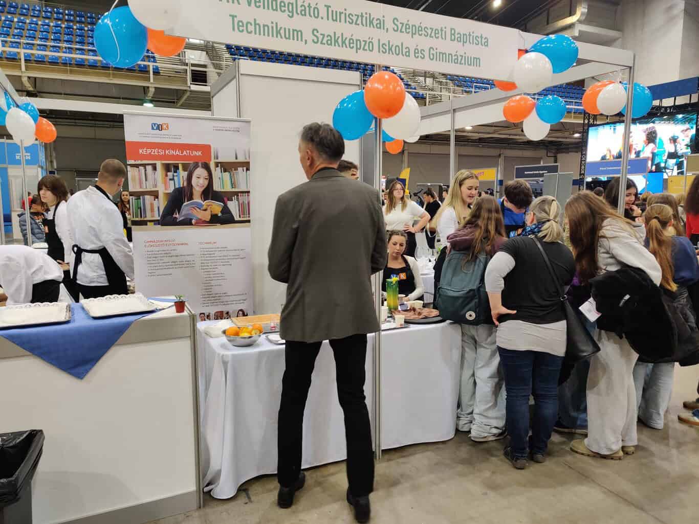 A VIK Vendéglátó, Turisztikai, Szépészeti és Üzleti Baptista Középiskola standjánál megtudtuk, hogy annak ellenére, hogy náluk a cukrász a legnépszerűbb képzés, közel sem ez a legkeresettebb szakma. Valójában a vendéglátási szaktechnikus névre keresztelt képzés az, mely többé kevésbé lefedi a felszolgálók munkakörét. Az ő üzenetük így hangzik: „a tapasztalataitok alapján hozzátok meg a döntéseiteket, és ne a szülői befolyás alapján!”