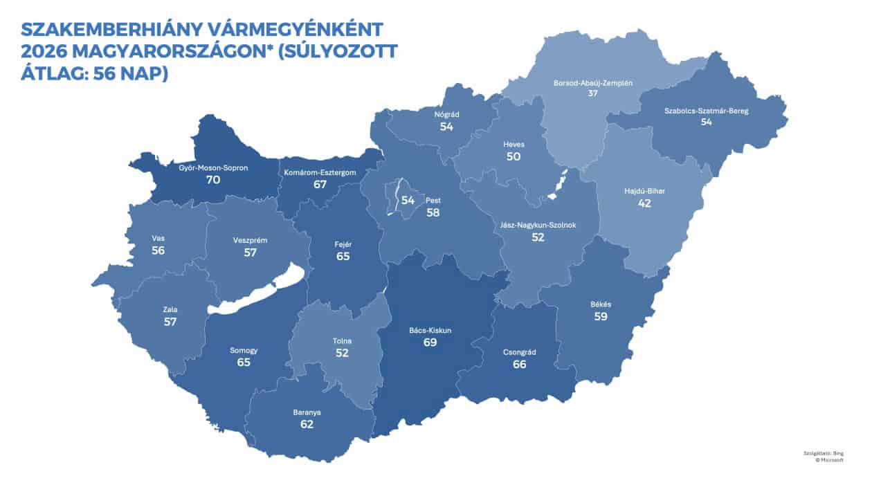 A kutatás szerint 2023-ban még 58 napot kellett várni egy szakemberre, 2024-ben ez lecsökkent 52 napra, majd 2025-ben 53 napra nőtt, 2026-ban pedig már 56 nap lett az átlagos várakozási idő.