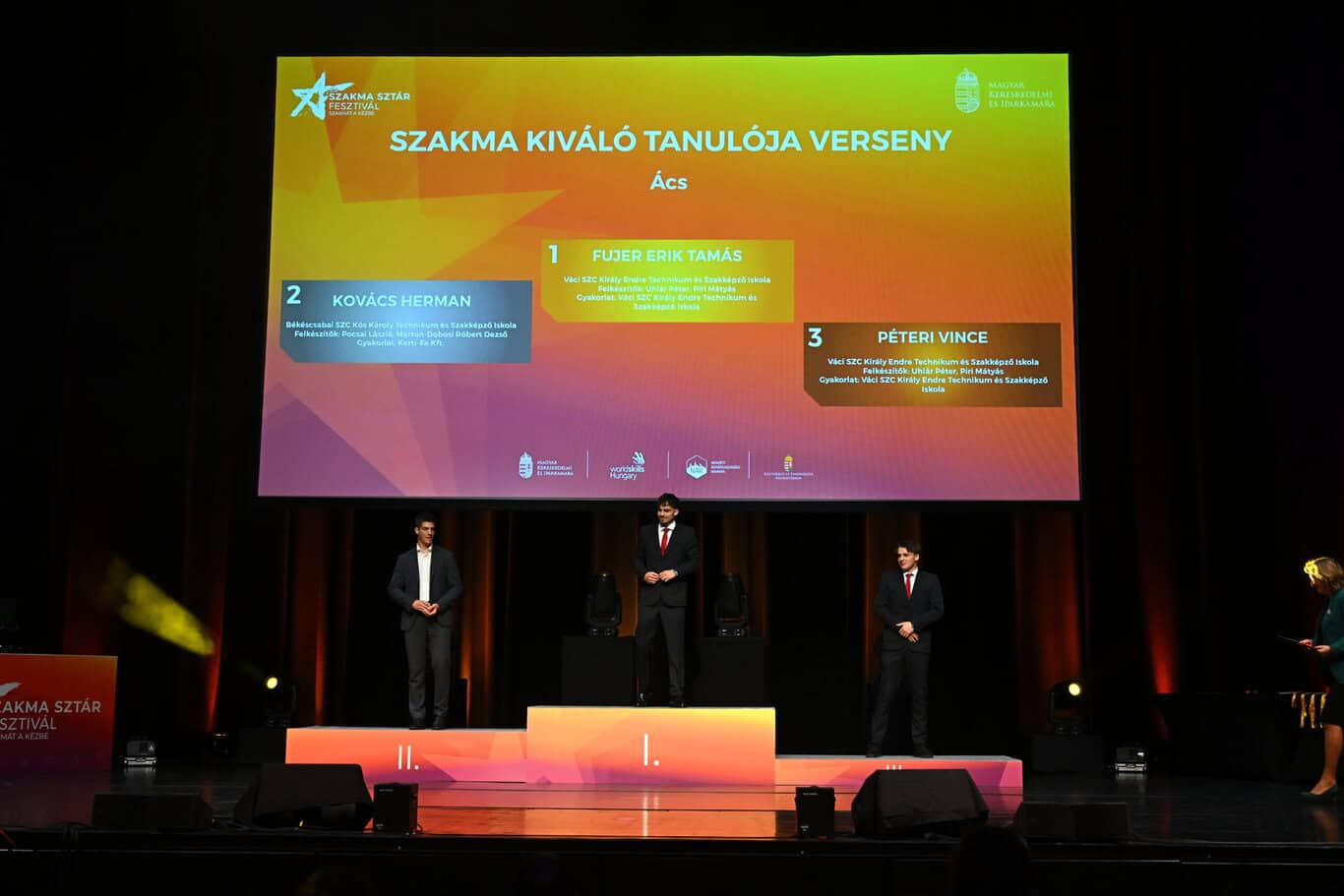 Először a Szakma Kiváló Tanulója Verseny díjait adták át, összesen 22 kategóriában:
