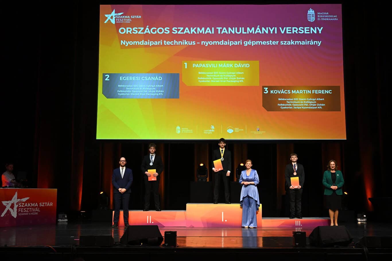 Őt Pálmai Gergely, szakképzésért felelős helyettes államtitkár követte, aki elmondta: az ilyen versenyeken dől el, hogy ki tudja a megszerzett tudását valódi értékké formálni. Elmondta: a ma jelenlévő fiatalok hazánk legtehetségesebb diákjai közé tartoznak, helyük van a legjobbak közt, ez pedig hosszú hónapok kemény munkájának és a felkészítők, a család és a közösség támogatásának köszönhető. „A szakma lehet hivatás és jövő, a munkátok pedig segíti a pályaválasztás előtt álló fiatalokat is, a jövő generációnak utat mutat” – fogalmazott.