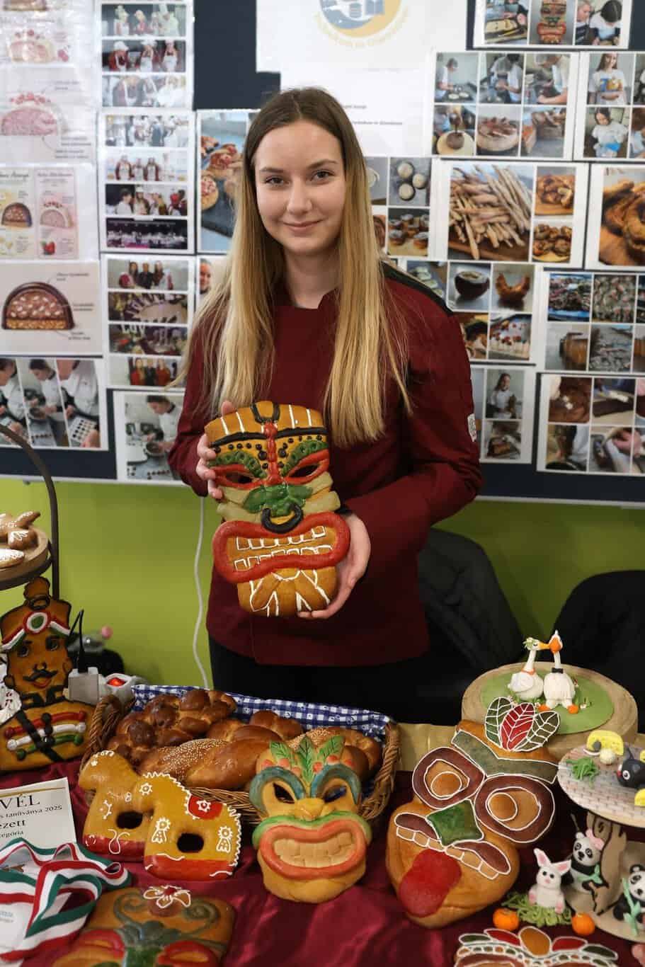 A másik oldalon a Siófoki SZC Krúdy Gyula Technikum és Gimnázium cukrászai mutatták meg, hogy a hagyományos szakmák és a modern szemlélet nem egymás ellenségei. A fagylaltkészítéstől a precíz fondantmunkákig olyan technikák jelentek meg a bemutatón, amelyeknél a látvány mögött nagyon komoly szakmai fegyelem van. A cukrászat ugyanis kívülről gyakran még mindig valami kedves, habos, díszítgetős világnak tűnik, aztán amikor valaki valóban beleáll, gyorsan kiderül, hogy ez a szakma kőkemény precizitást követel. Nem véletlen, hogy a versenyeredmények is fontos visszajelzést jelentenek ezen a területen. Trefeli Szonja a képen is látható példája, aki több versenyen is első helyezést ért el, jól mutatja, hogy a részletek iránti érzékenység itt tényleg nem dísz, hanem alapfeltétel.